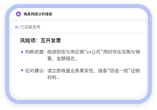 一键生成《AI税务风险分析报告》,自动排查数十个隐藏风险点。
