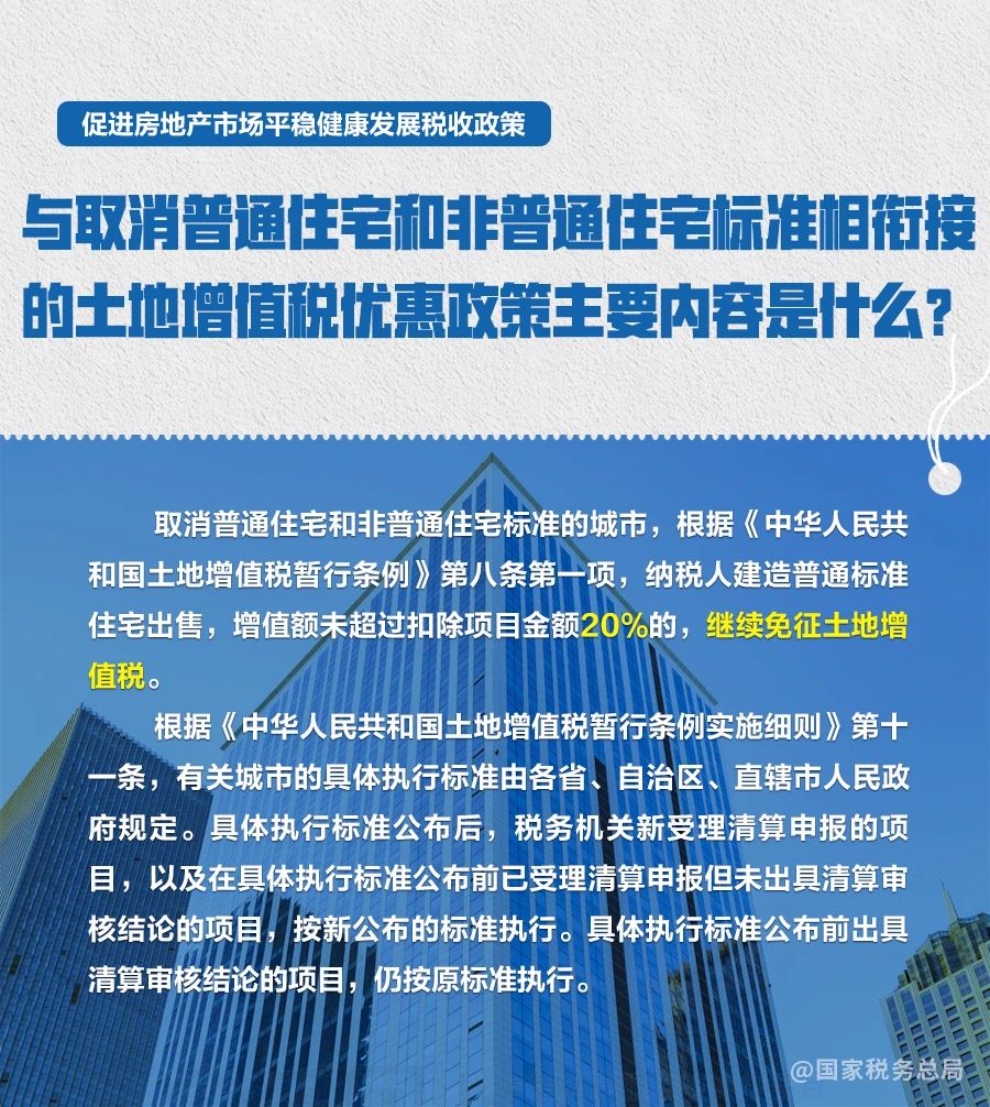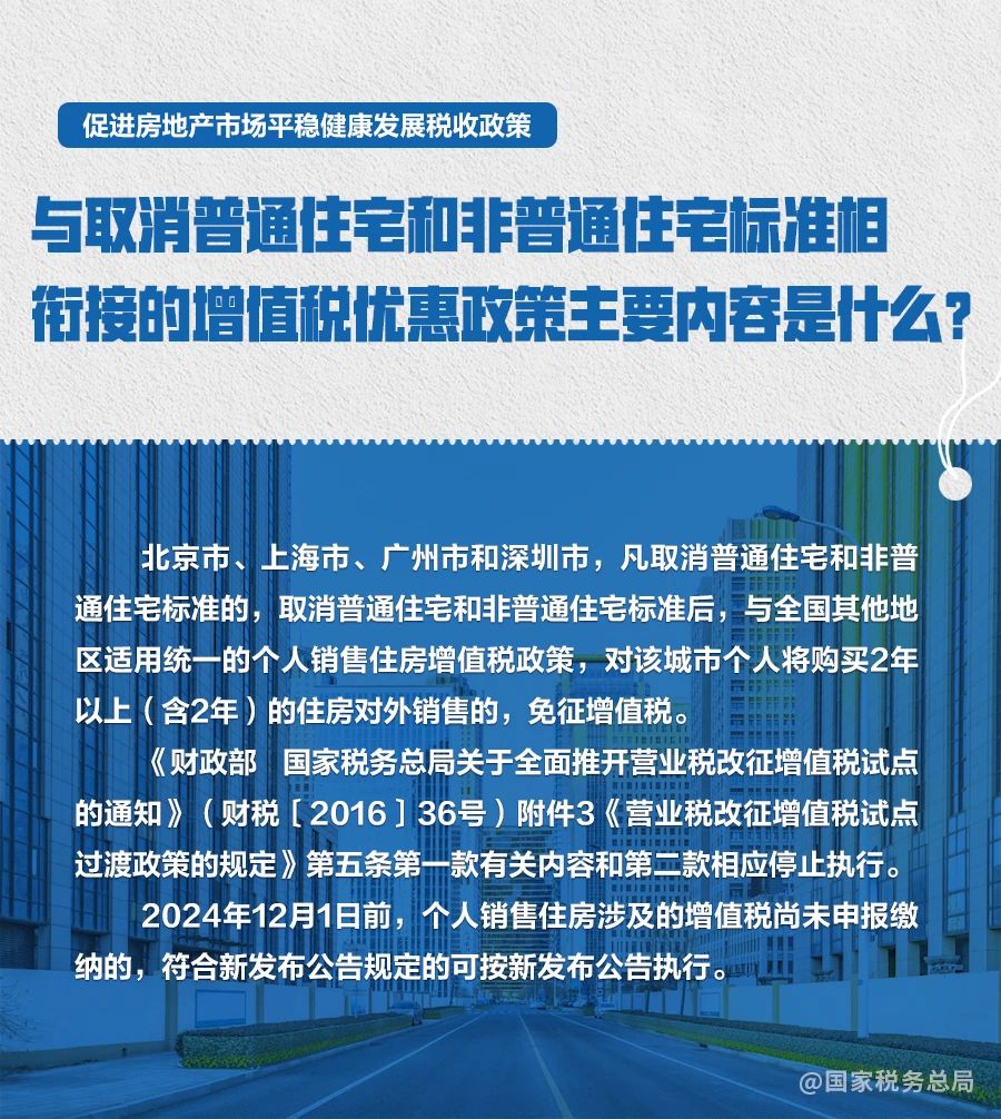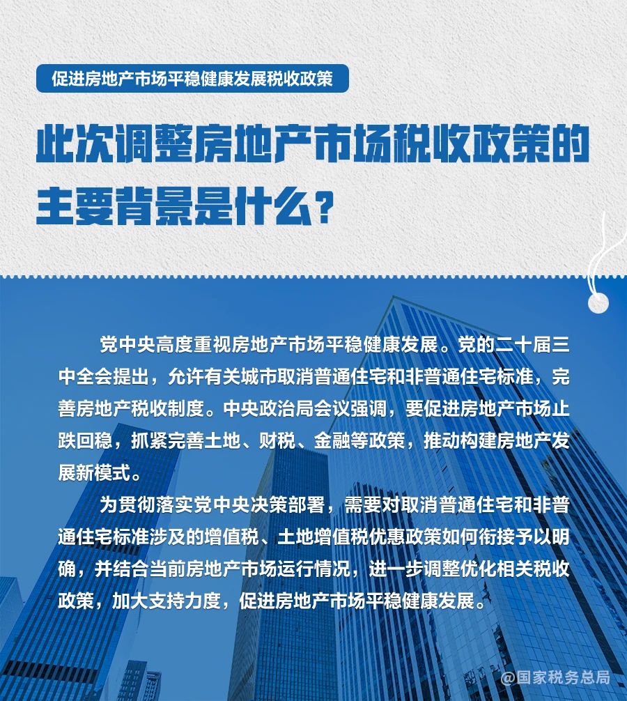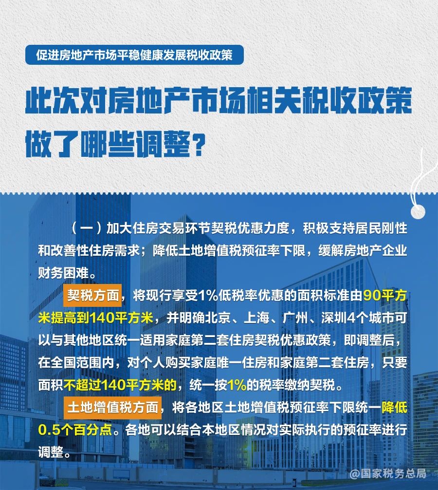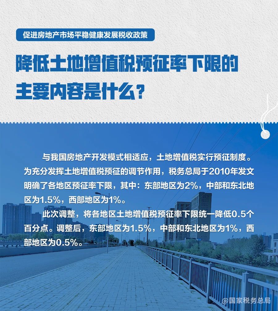 为贯彻落实党中央、国务院决策部署,促进房地产市场平稳健康发展,近日,财政部、税务总局、住房城乡建设部发布了《关于促进房地产市场平稳健康发展有关税收政策的公告》,税务总局发布了《关于降低土地增值税预征率下限的公告》,自2024年12月1日起执行。相关热点问答如下↓