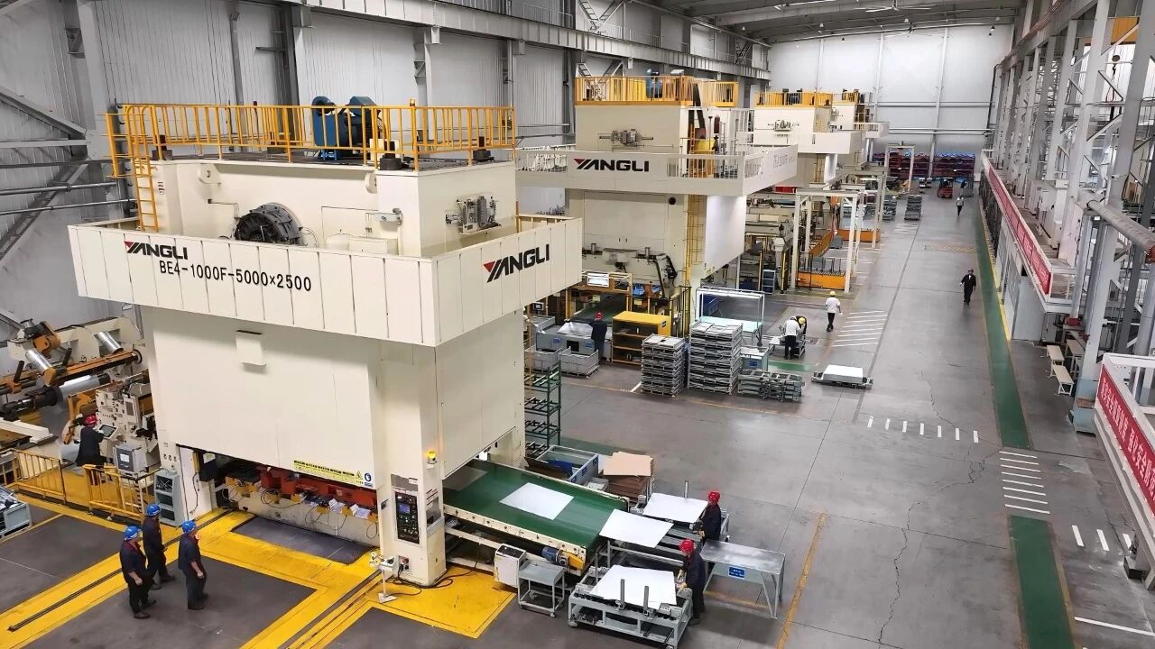 来金(天津)汽车零部件有限公司生产车间中的多工位自动冲压线。孙晓斌 刘鹏/摄