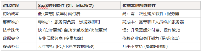 SaaS(软件即服务)财务软件与传统本地部署软件的核心区别在于部署模式、成本结构和技术迭代。SaaS软件通过云端订阅使用,按年付费,自动更新;而传统软件则需一次性购买许可证,并安装在本地服务器上,需企业自行维护和升级。