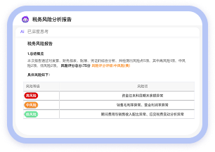 一键生成《AI税务风险分析报告》,自动排查数十个隐藏风险点。